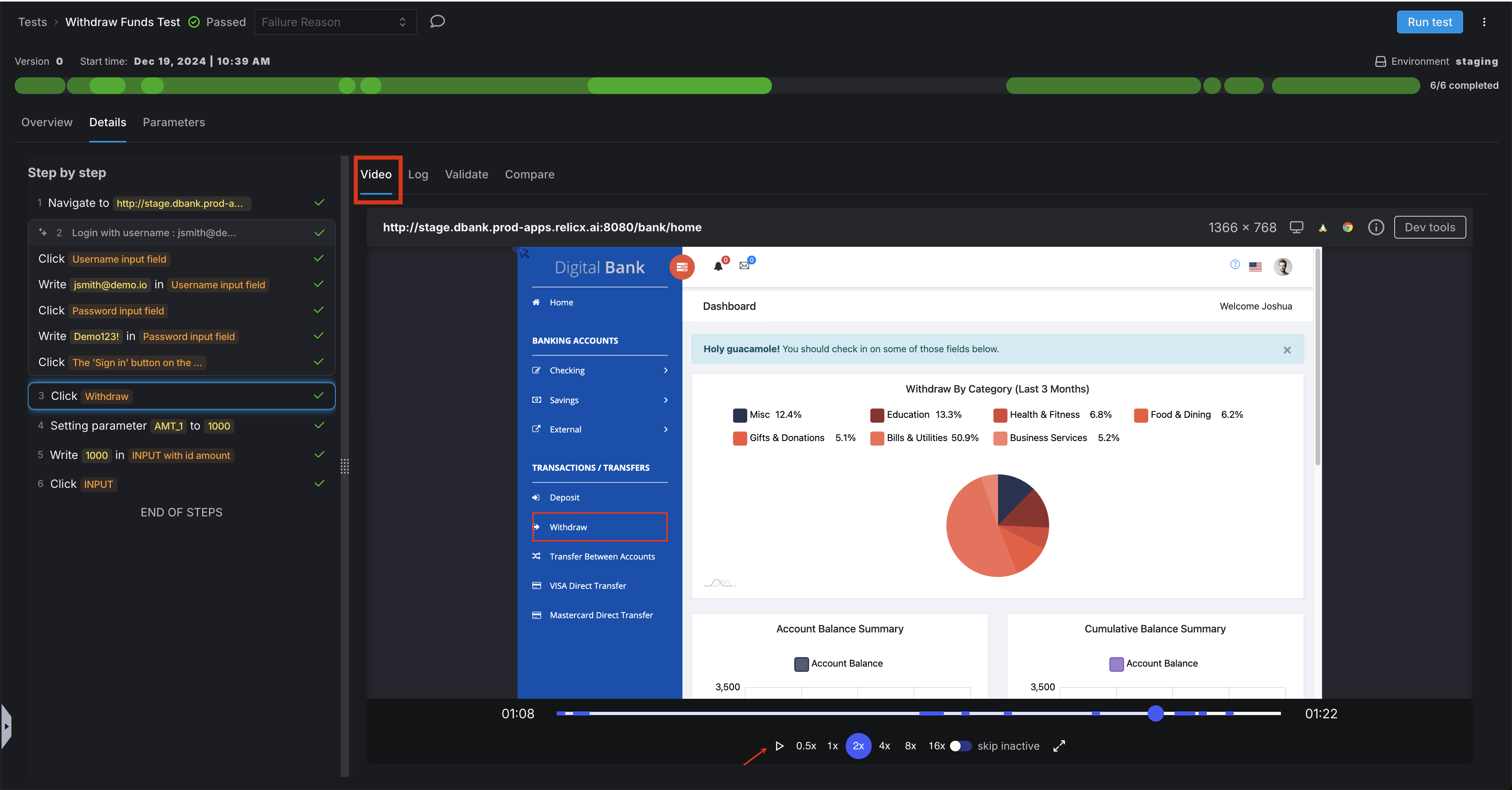 One of the most valuable features of Harness AI Test Automation is the ability to watch video recordings of test executions: