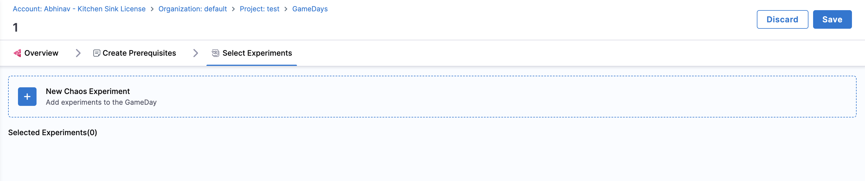 1. Go to Chaos module, select GameDay and click +New GameDay.