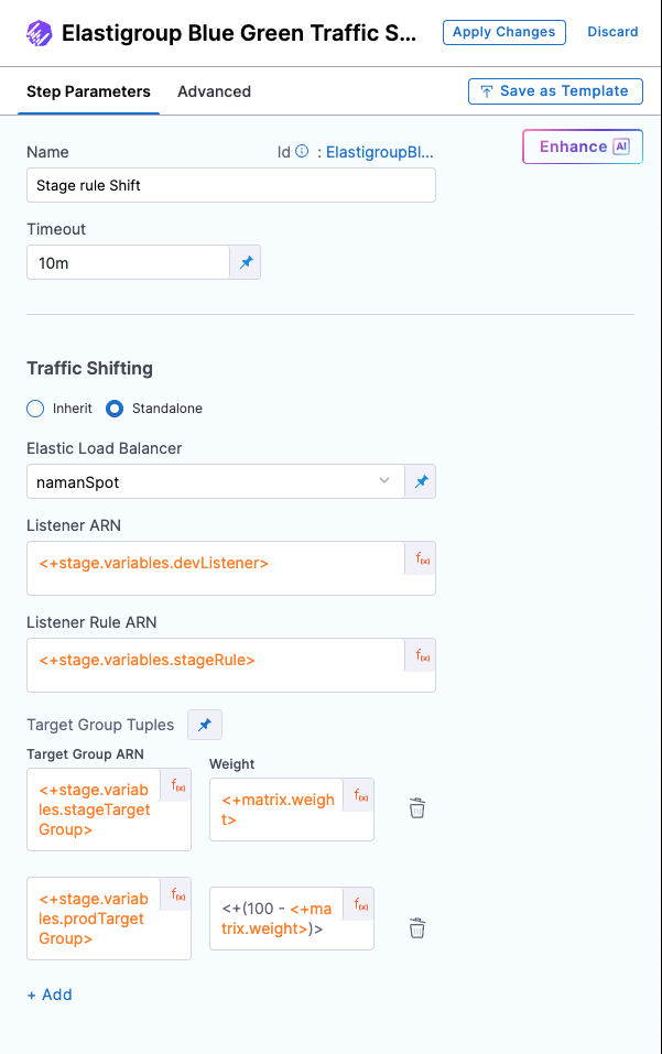 2. Add an Elastigroup Blue Green Traffic step (inherit or standalone) to begin shifting traffic incrementally.