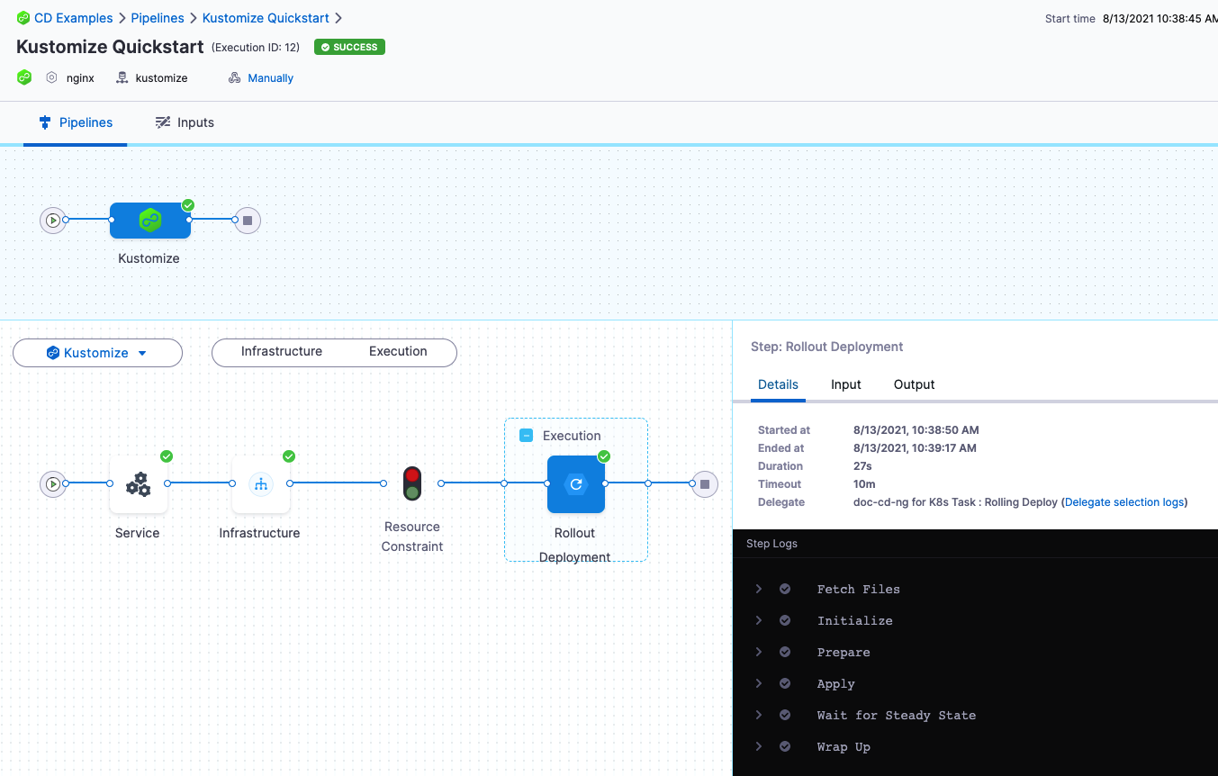 For frequently asked questions about Kustomize deployments in Harness, go to Kustomize deployment FAQs.