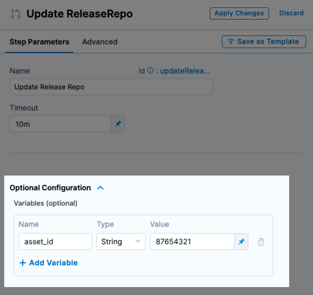 If there is a matching variable name in the variables of the Harness service or environment used in this pipeline, the variable entered in this step will override them.