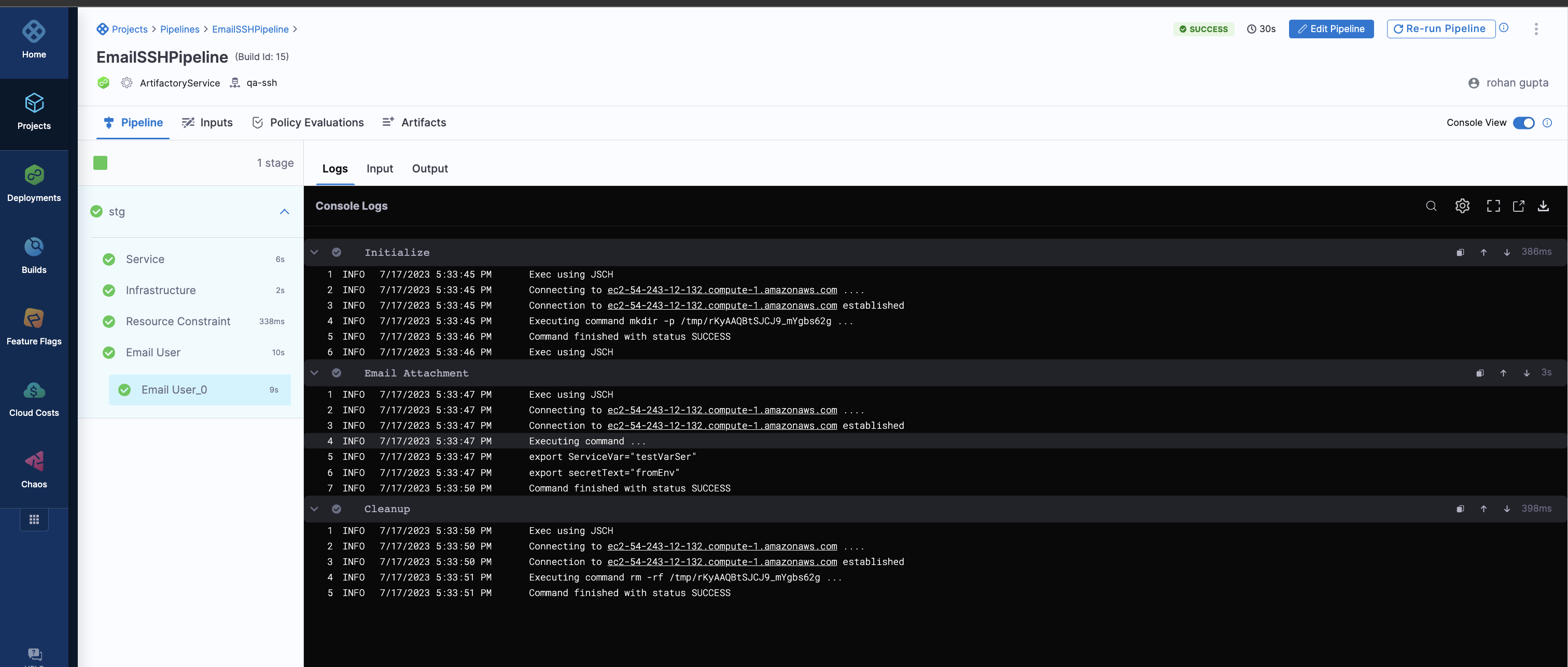 While the pipeline is running, you will see Using HTTP_PROXY environment variable log message for the Download Artifact command type. This message indicates that the proxy is used on the target machine.