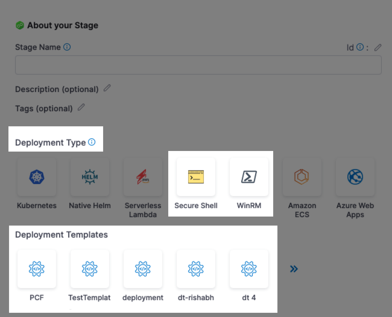 2. Create a deployment stage with an SSH type service and infrastructure definition.