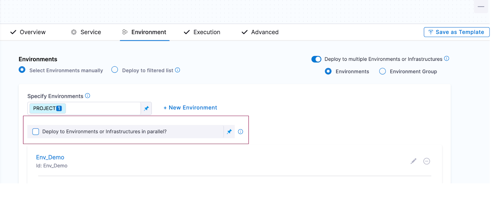 • If you select Deploy to Environments or Infrastructures in parallel, Max concurrency is equal to the number of environments or infrastructures.