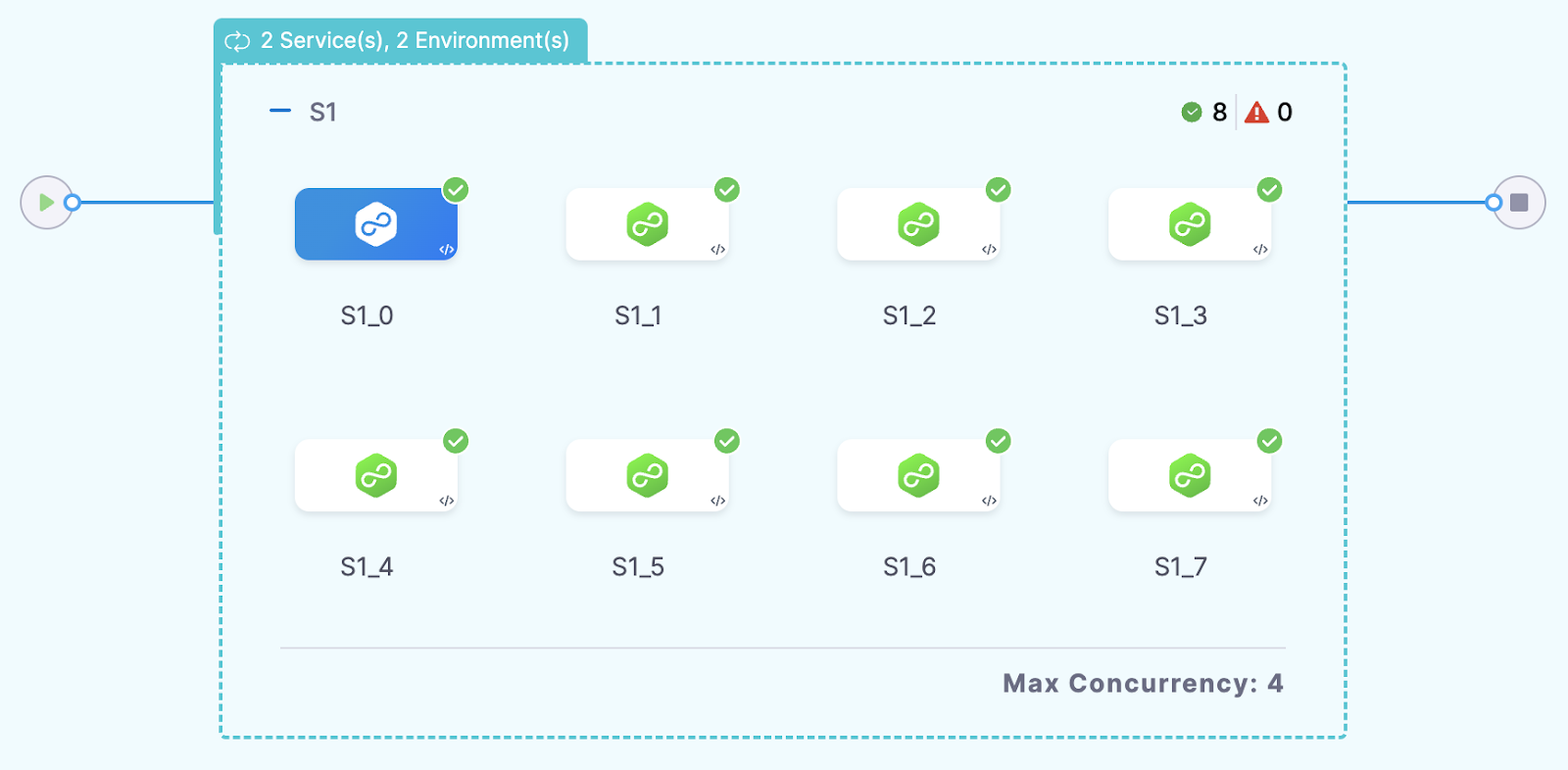 • If you select Deploy services in parallel and Deploy to Environments or Infrastructures in parallel, Max concurrency is equal to the number of services multiplied by the number of environments.