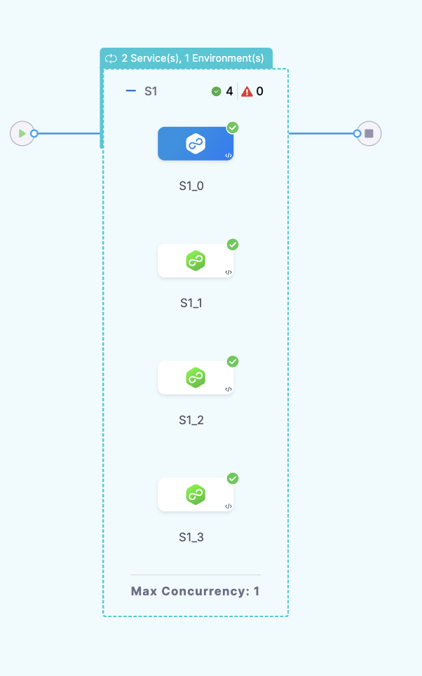 2. After 2 (S2 I1) is deployed, then 4 (S2 I2) will be deployed sequentially (same service across different infrastructures).