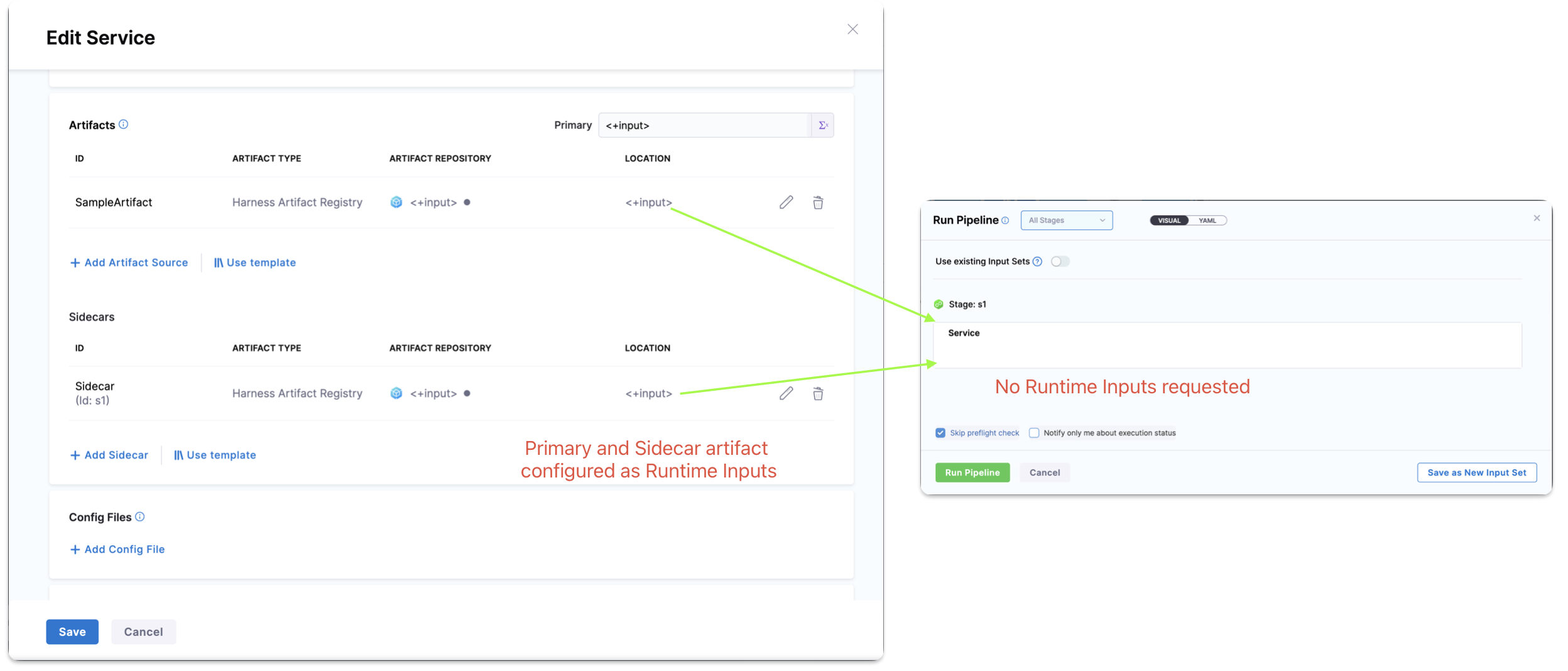If the Disable artifact in this stage checkbox is enabled, and the artifact or artifact tag is configured as runtime inputs, the pipeline will not prompt for the artifact or artifact tag during execution.
