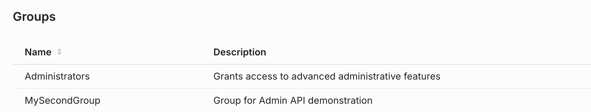 You can use the Admin API to create, edit, and delete users and groups programmatically using HTTP-based API calls. This allows you to manage your users and groups from an external system instead of using the UI.