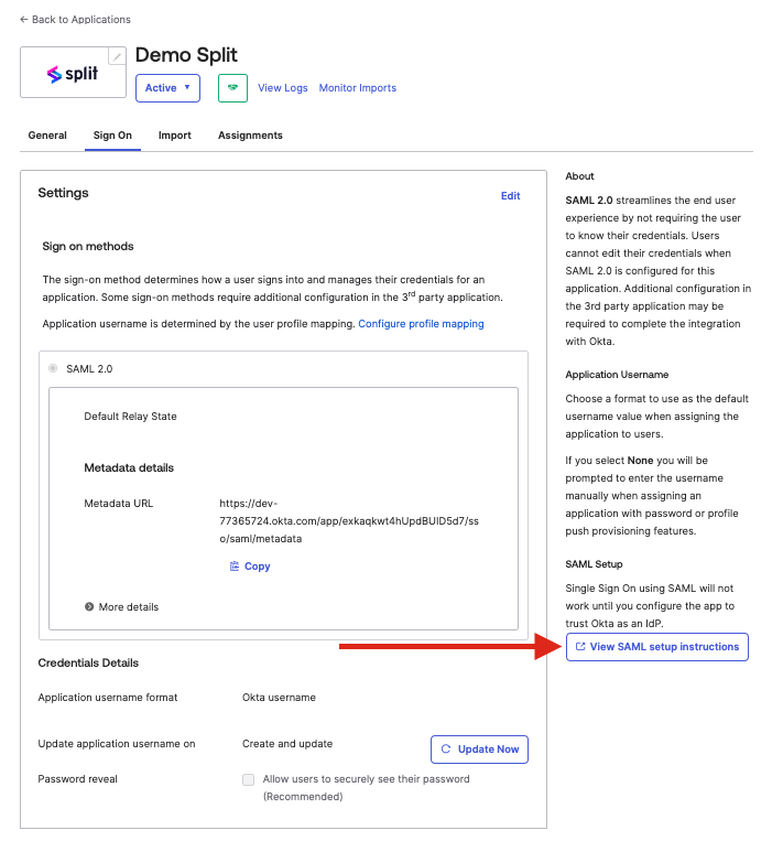 Split is now linked with Okta.