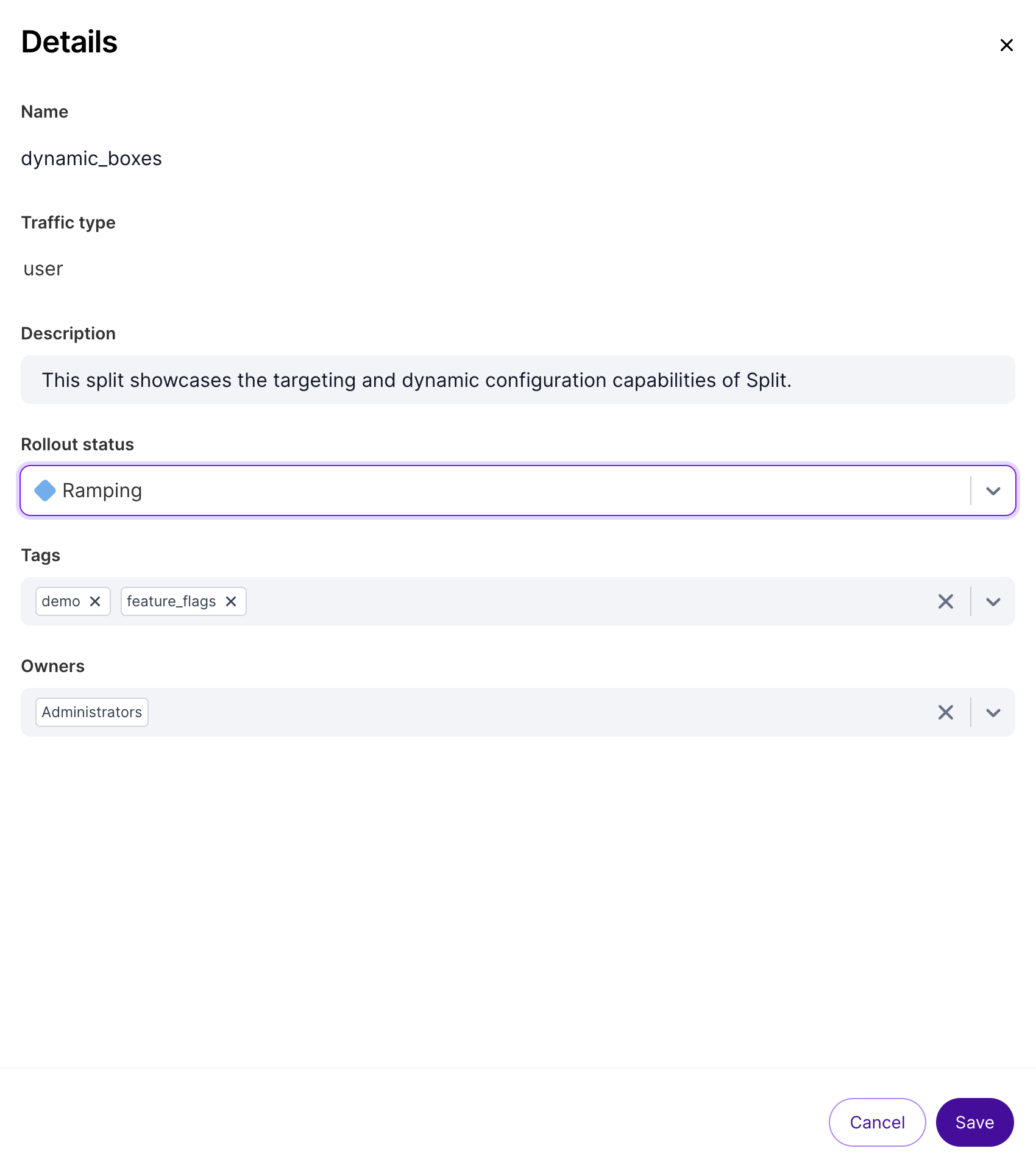 If you want to change the status of that feature flag without changing the rollout plan, you can mark it as permanent or removed from the code, or to assign a status if you forgot to do so when you changed your targeting rules. To change the status, do the following: