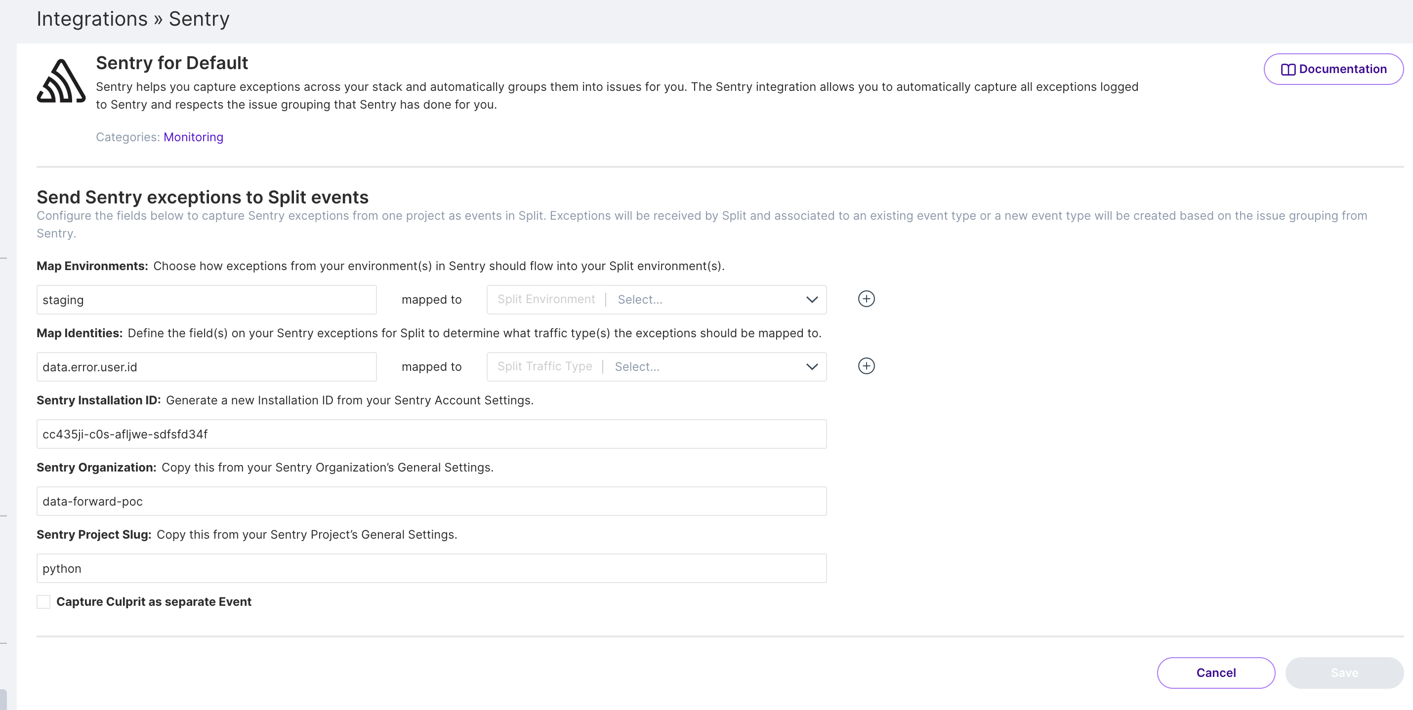 Use this integration to send exceptions from your Projects in Sentry to Harness FME. When configured, Harness FME will quickly process and display Sentry exception data in Harness FME as track events for analysis. You can control what environments and traffic types you're capturing exceptions for in Harness FME without having to touch any code.