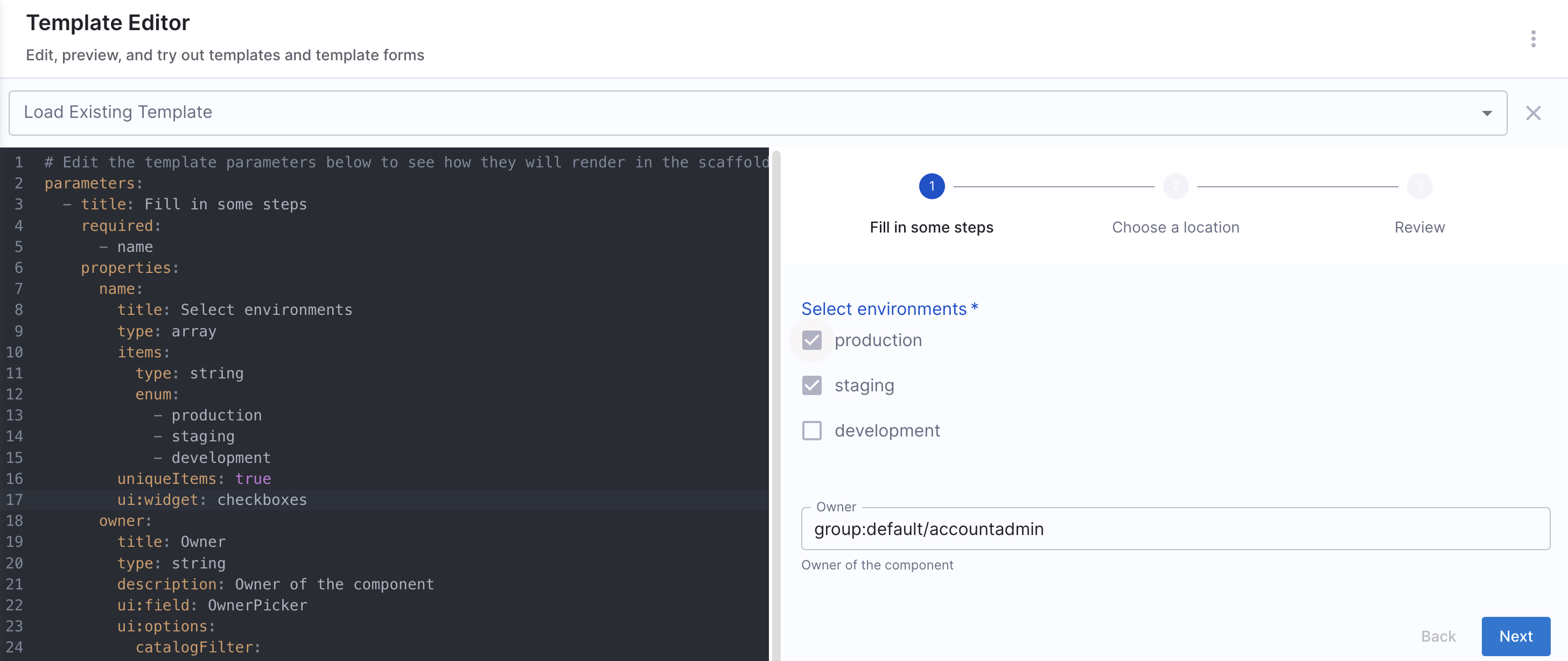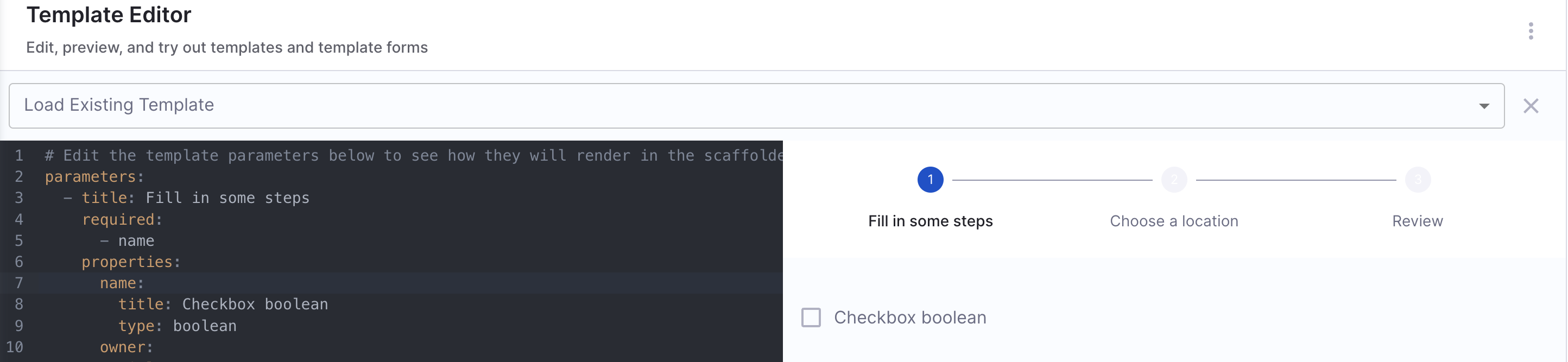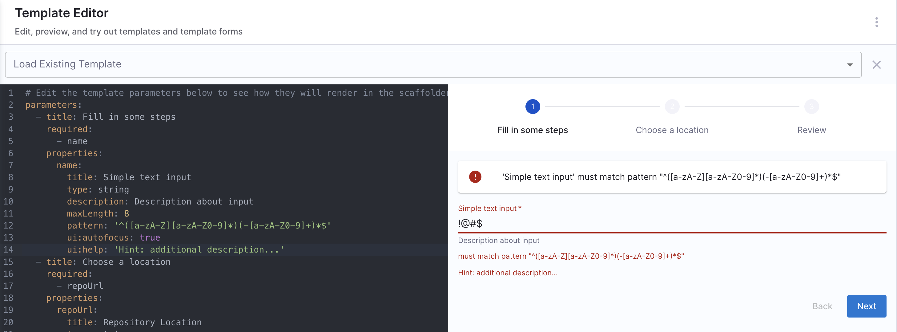 For scenarios not covered in this guide, it is recommended to use the react-jsonschema-form playground to design the UI for input fields. Additionally, Nunjucks serves as the templating engine for Self-Service Workflows.