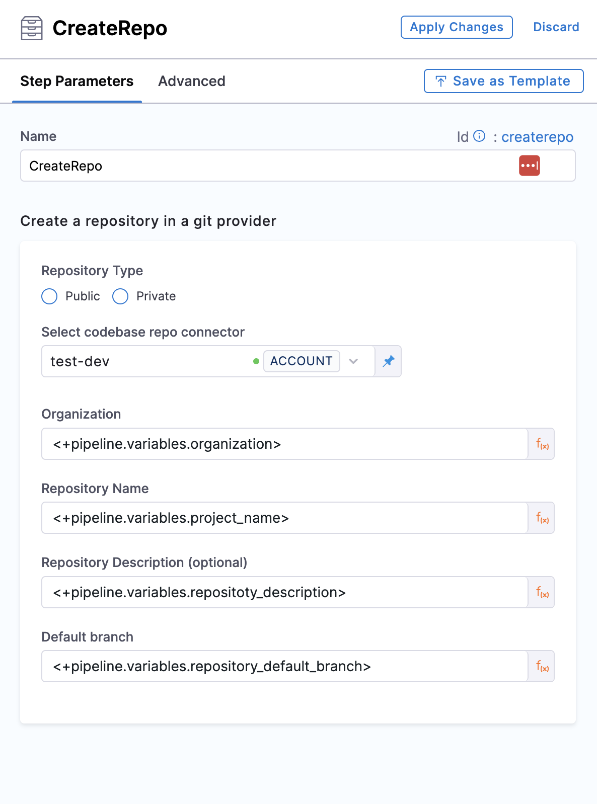 Before adding the execution steps, we need to create some pipeline variables with runtime inputs, which will be used as expression inputs in various steps during execution.