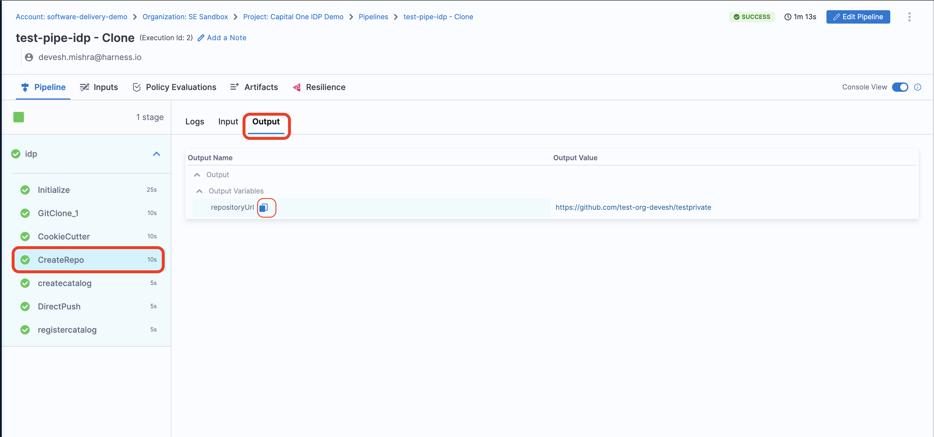 pipeline.stages.testci.spec.execution.steps.Run_1.output.outputVariables.test1is derived from:<+pipeline.stages.testci.spec.execution.steps.Run_1.output.outputVariables.test2>