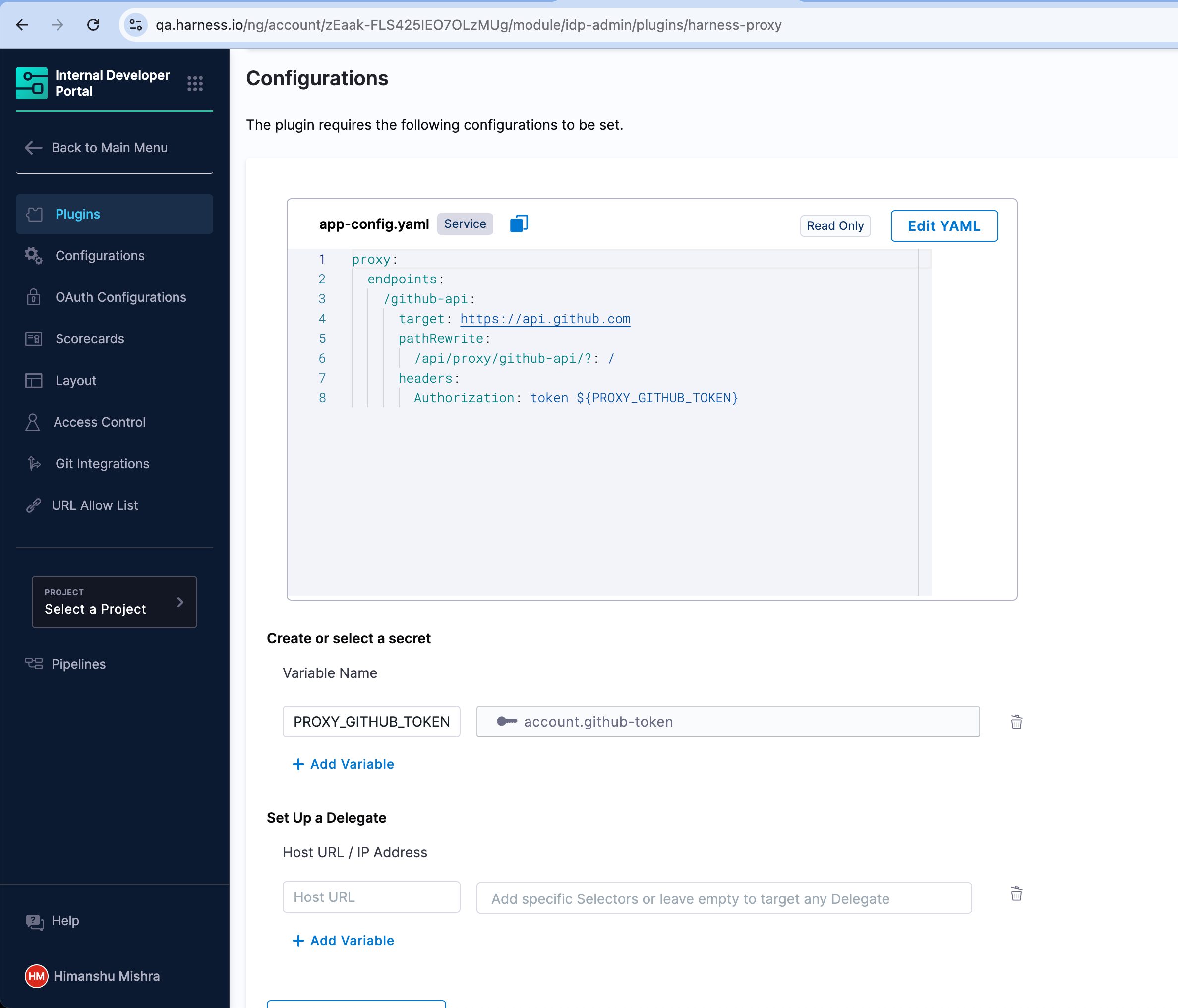 3. Configure Delegate Proxy (Delegate HTTP Proxy) (in case the API is not publicly accessible, or the secret is on your infrastructure)
