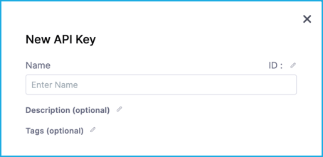 - Enter a Name for the API key. Description and Tags are optional.