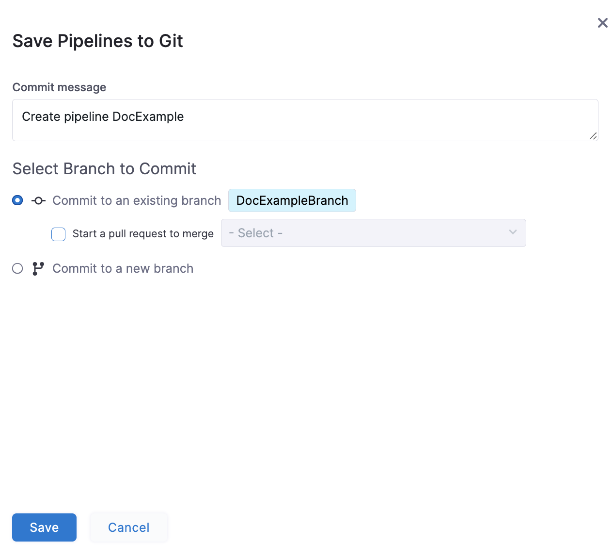 This quickstart explains how to add a pipeline and sync it with your Git repo. This is called the Remote option. To add a remote pipeline, see Remote option. To add an inline pipeline, see Create a Pipeline.