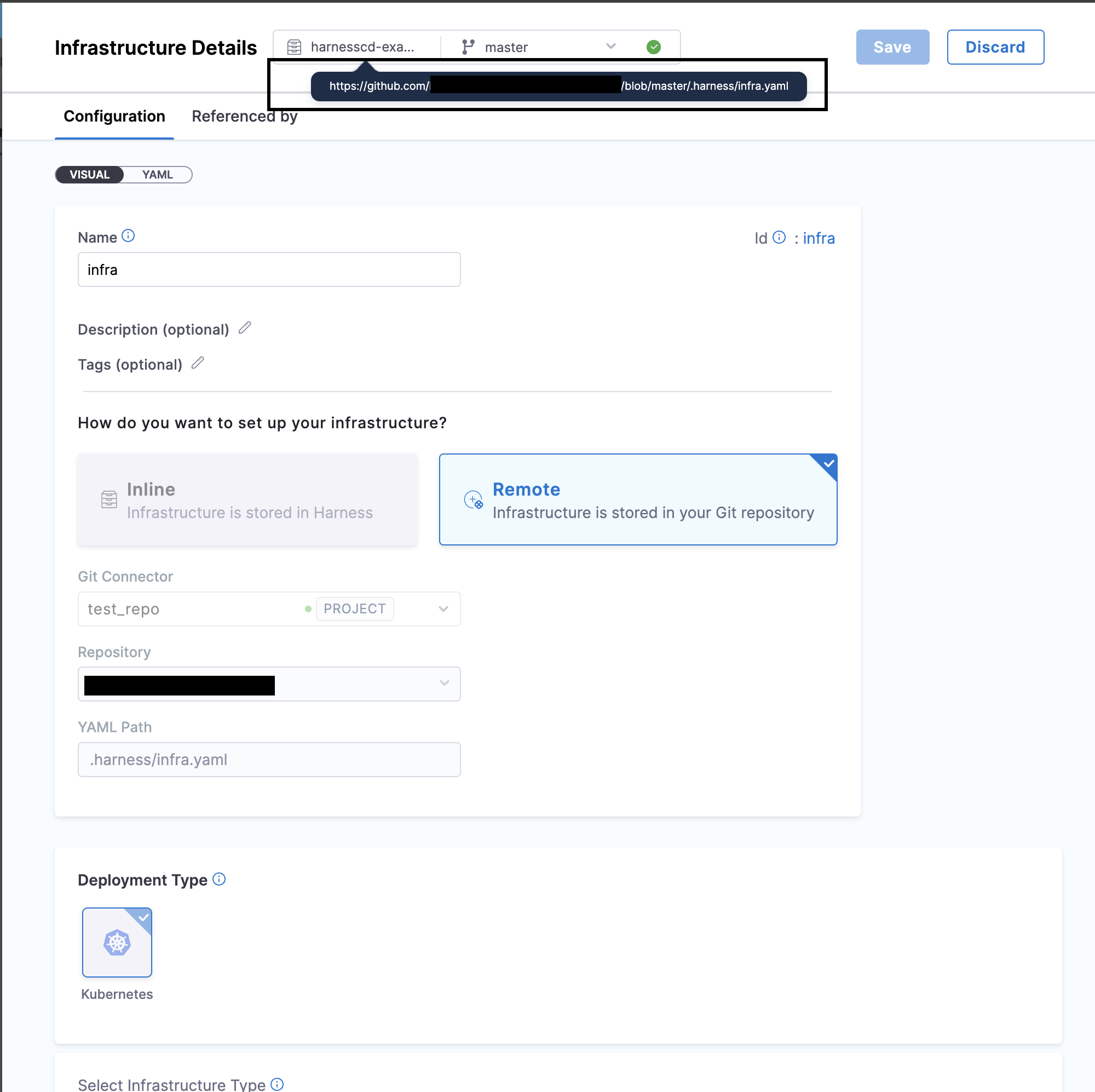 9. Click the YAML path to view your Infrastructure Definition YAML file in your Git repo.