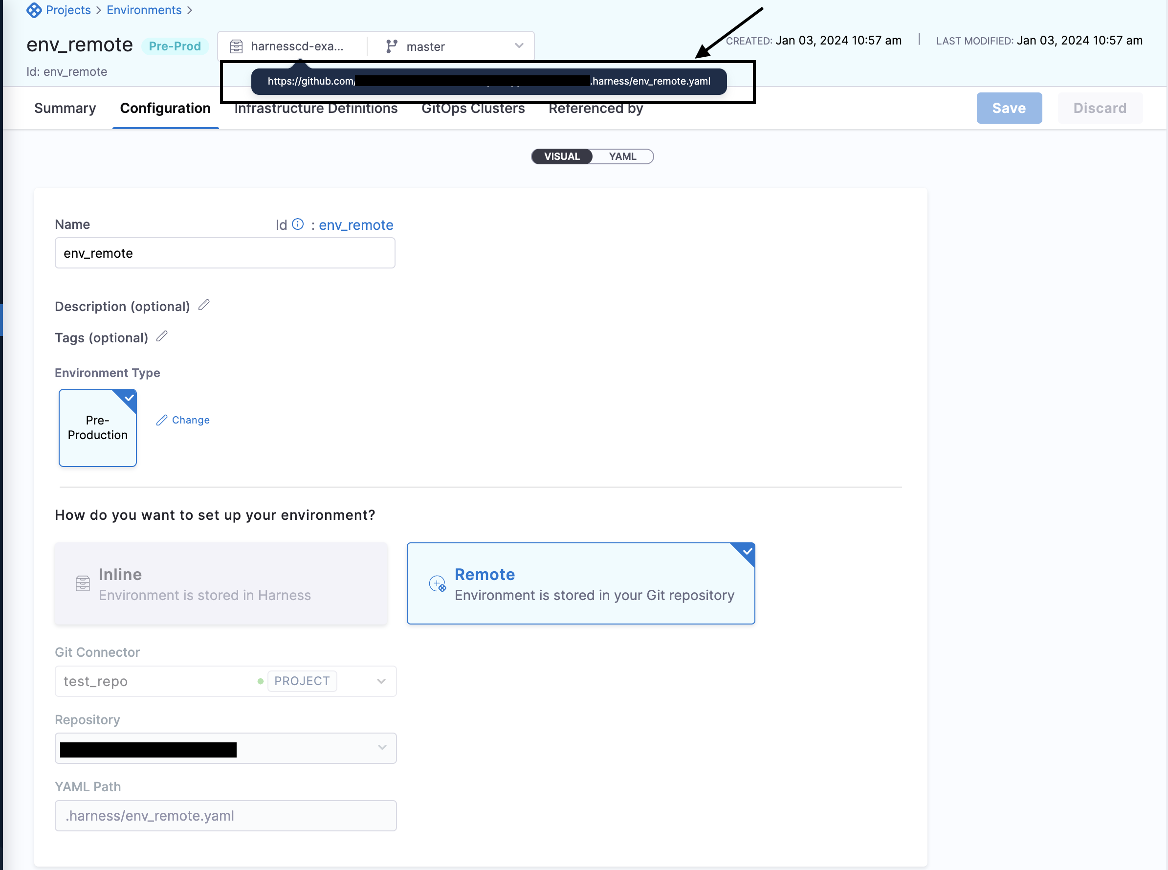 When you create a new Harness environment or infrastructure definition, you can store it in one of the following ways: