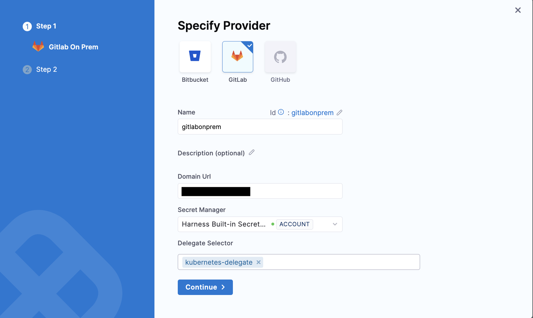 - Specify the Secret Manager. This is where you have the access token related to the Gitlab stored.