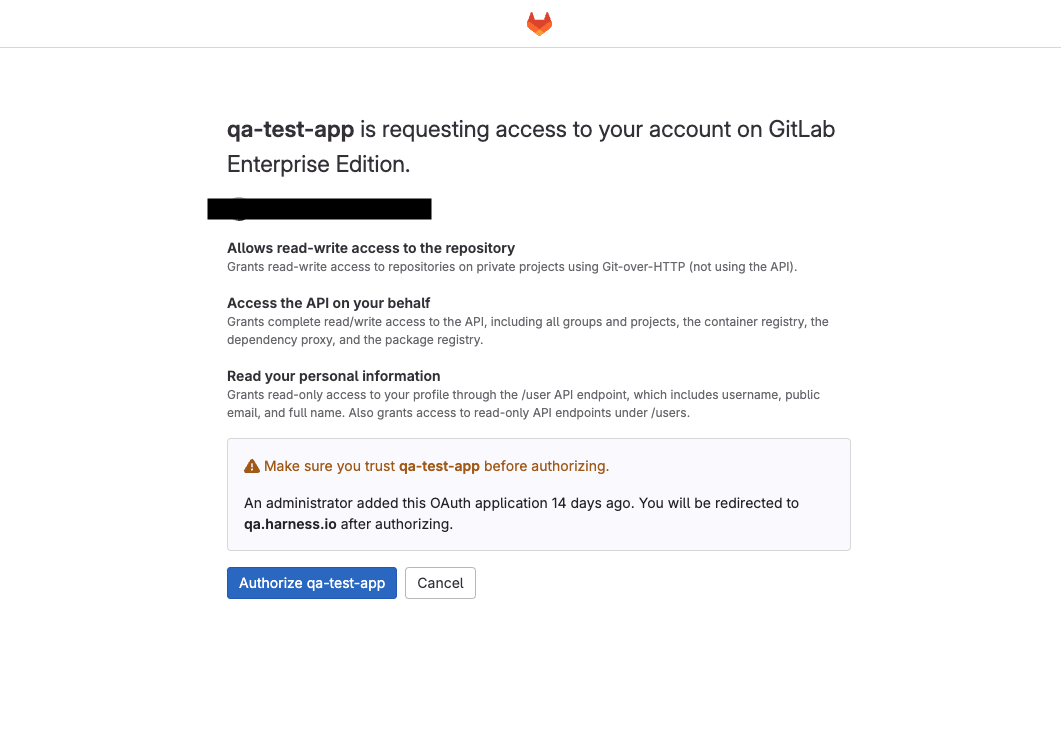 For GitLab, customers need to ensure that their Vanity URL is added to the OAuth application's redirect URI list. The OAuth application is set up by Harness, so customers will need to contact Harness Support to complete this process. They must provide their subdomain to have the Vanity URL whitelisted.