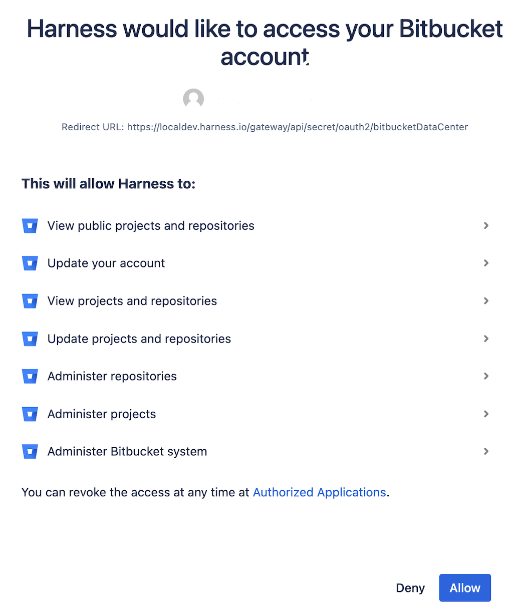 Once you select Alow on the Bitbucket page, the access token will be created.