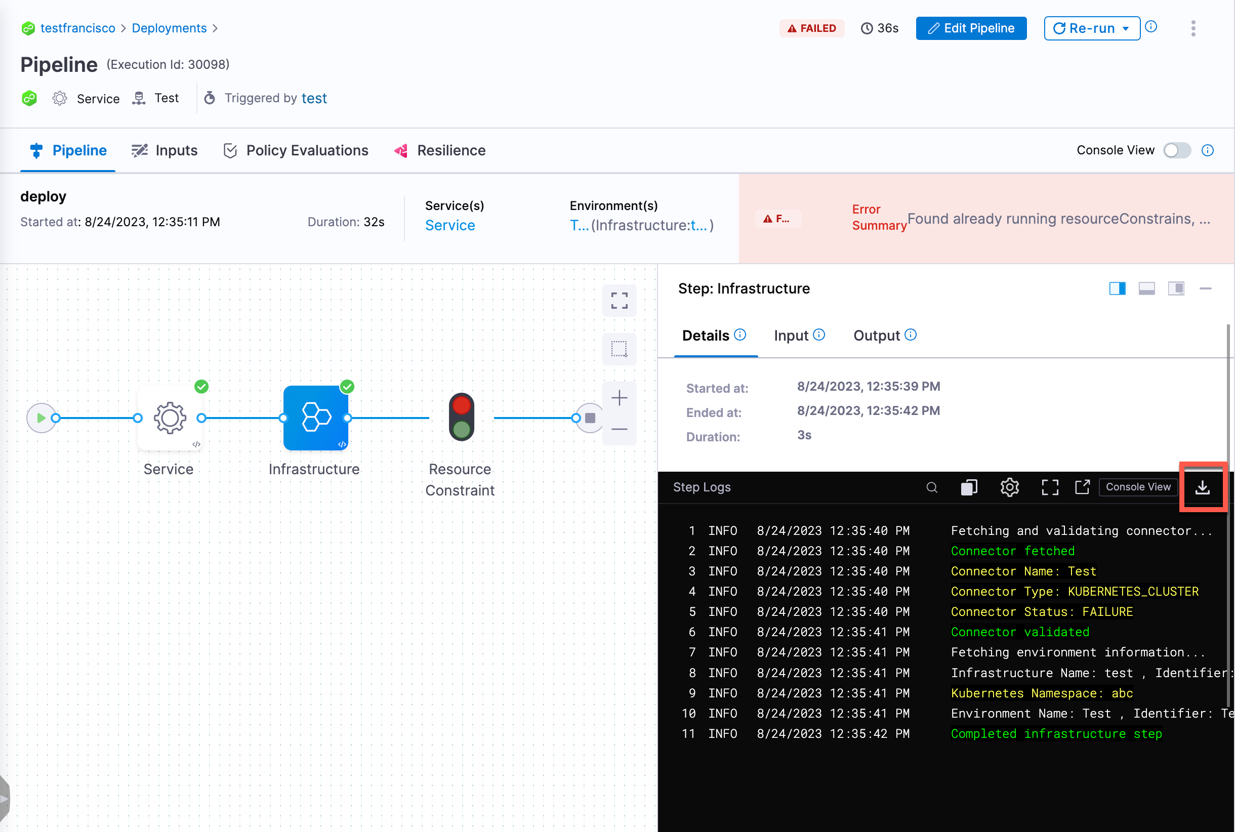 Currently, the simplified log key to download logs is behind the feature flag PIE_SIMPLIFY_LOG_BASE_KEY. Contact Harness Support to enable the feature.