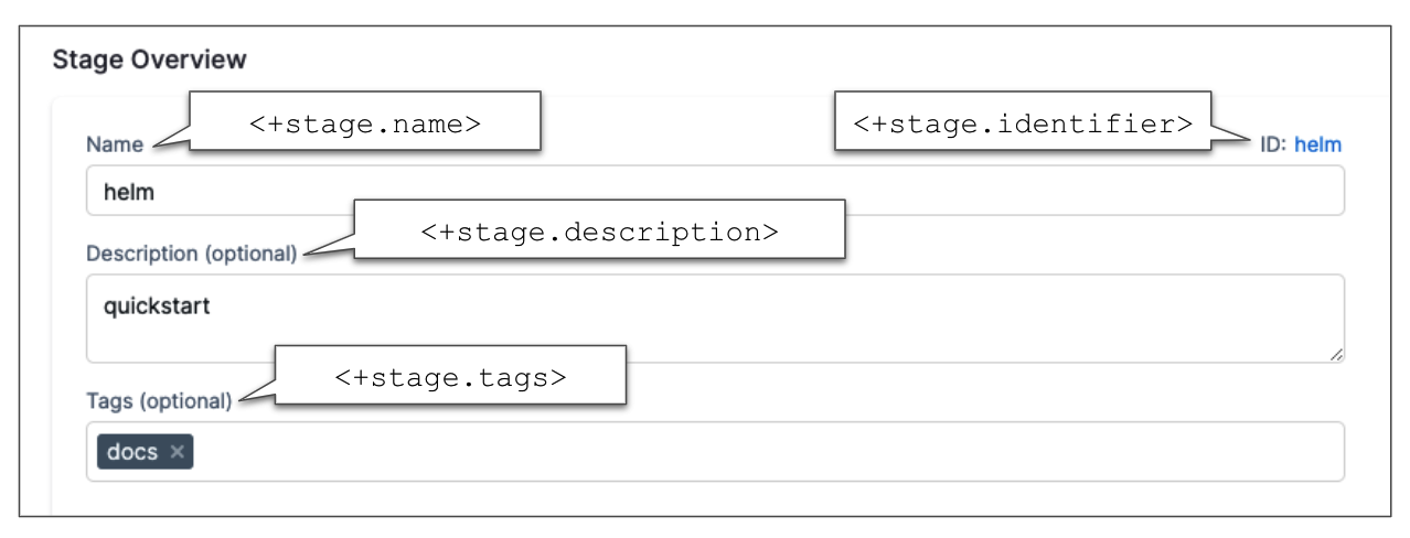 • <+env.identifier>: The entity identifier of the environment used in the current stage.