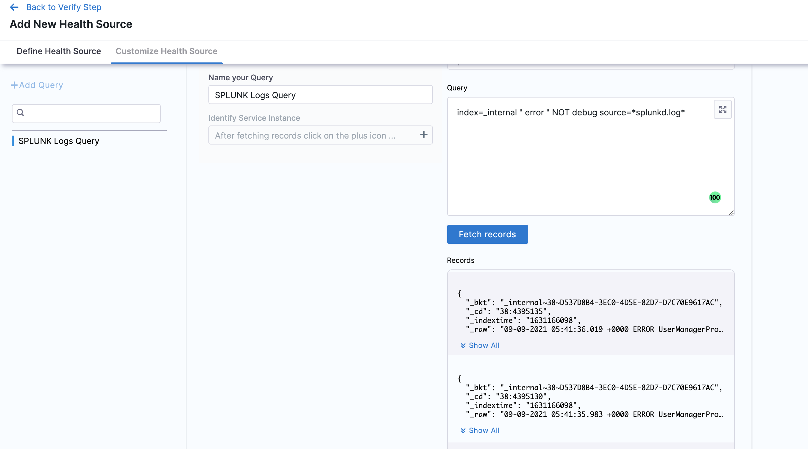 Click Next. The Customize Health Source settings appear. The subsequent settings in Customize Health Source depend on the Health Source Type you selected. You can customize the metrics to map the Harness Service to the monitored environment in Query Specifications and Mapping settings.