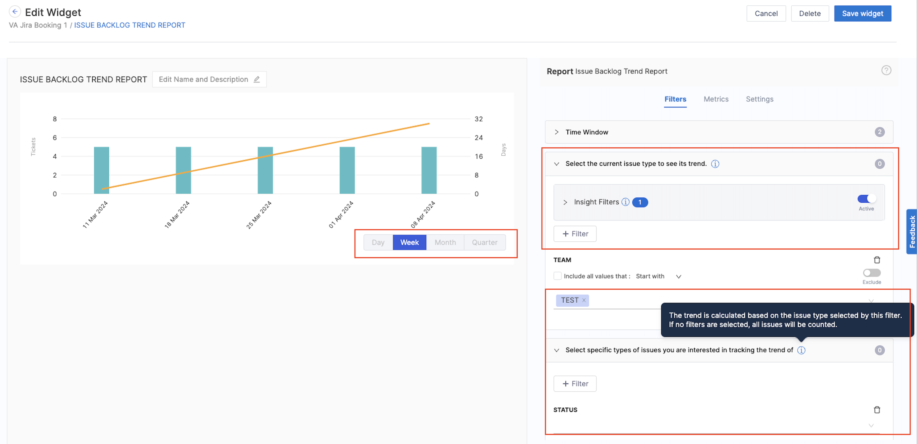 • In the Issue Backlog Trend Report, there was a bug where the Ticket Lifetime field appeared the same for all tickets. This has been fixed and now the field has been replaced with the Resolution Time column. (SEI-1999)